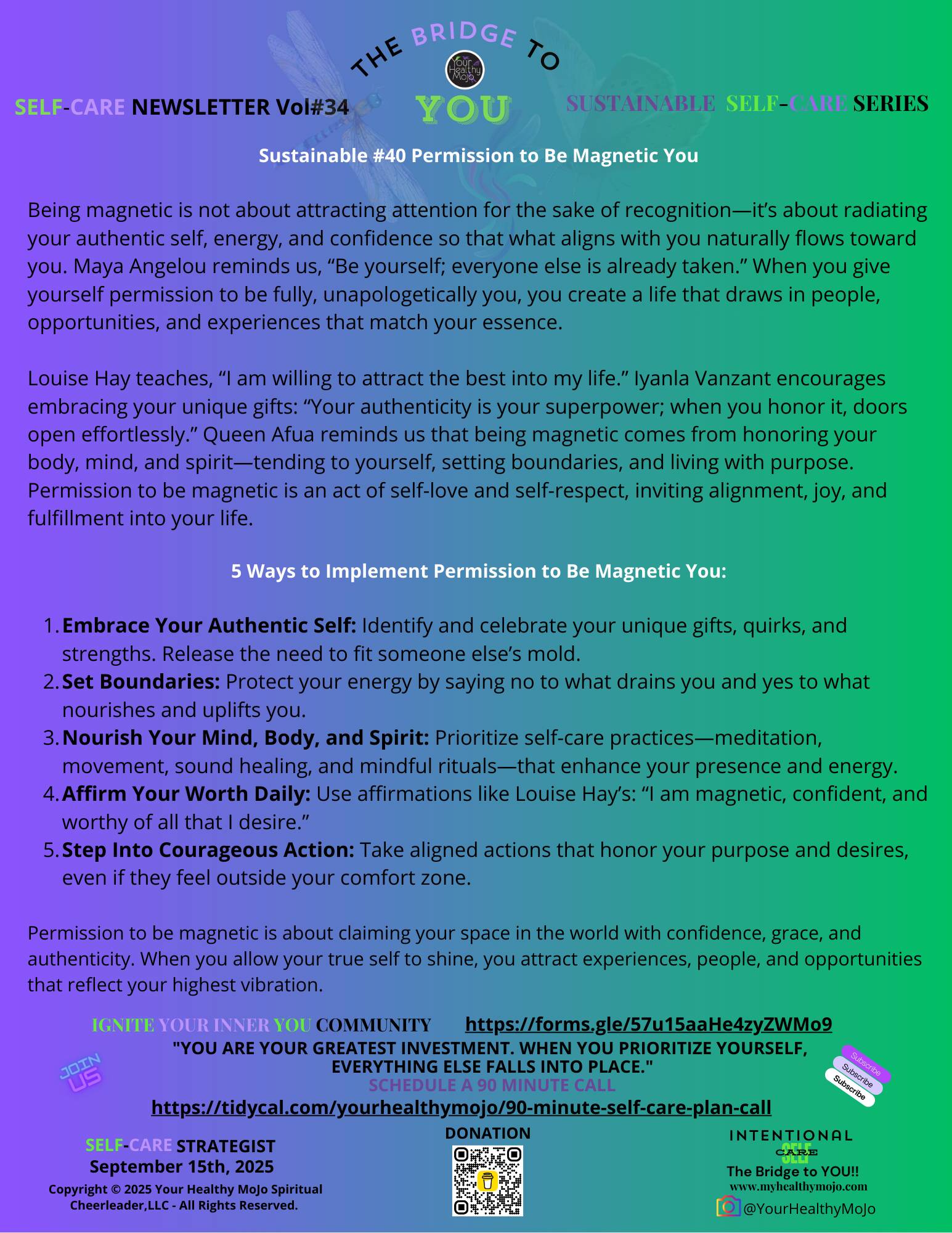 Self Care Newsletter Vol#34 WK#3 "Magnetism is not about being perfect. It's about being real." Unknown
