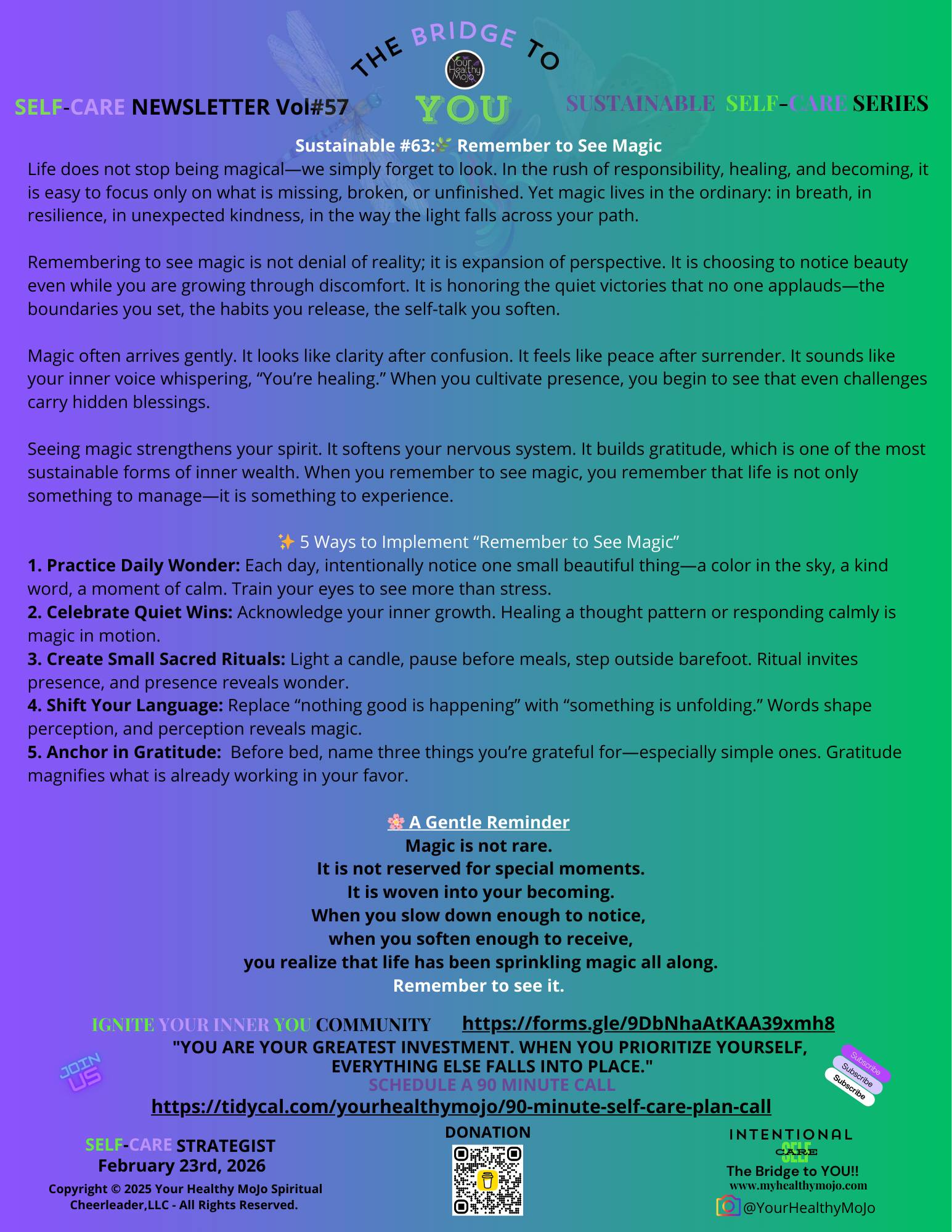 Self Care NewsletterVol#57 Week #4 "The world is full of magic things, patiently waiting for our senses to grow sharper." W.B. Yeats